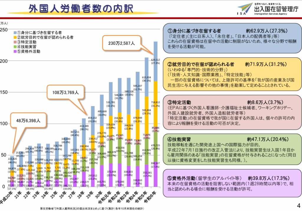最近の閣議決定でも特定技能と令和9年から起動する育成就労(技能実習制度を廃止し、代わりの制度)について”我が国の経済社会の活性化や一層の国際化を図る観点から、専門的・技術的分野の外国人労働者の受入れをより積極的に推進” と方針が決められました。